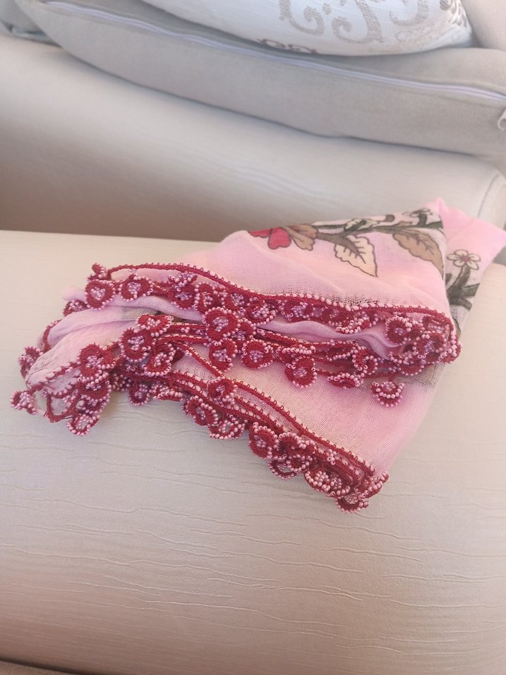 Dantel Detaylı Pembe Bohem Kadın Fular