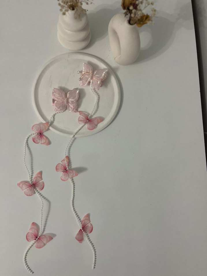 Dantel Detaylı Pembe Bohem Kelebek Saç Aksesuarı