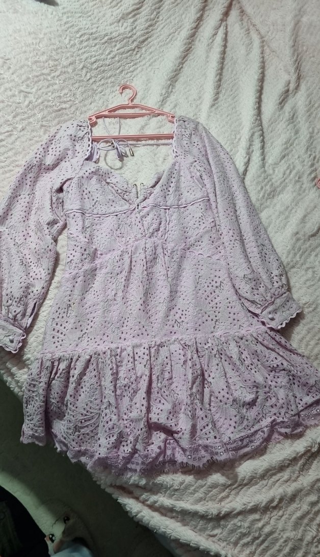 Pembe renkte, dantel detaylı ve nakışlı örme kumaştan yapılmış bohem midi elbise. Salaş kesim, V yaka ve uzun kolludur, günlük kullanım için uygundur