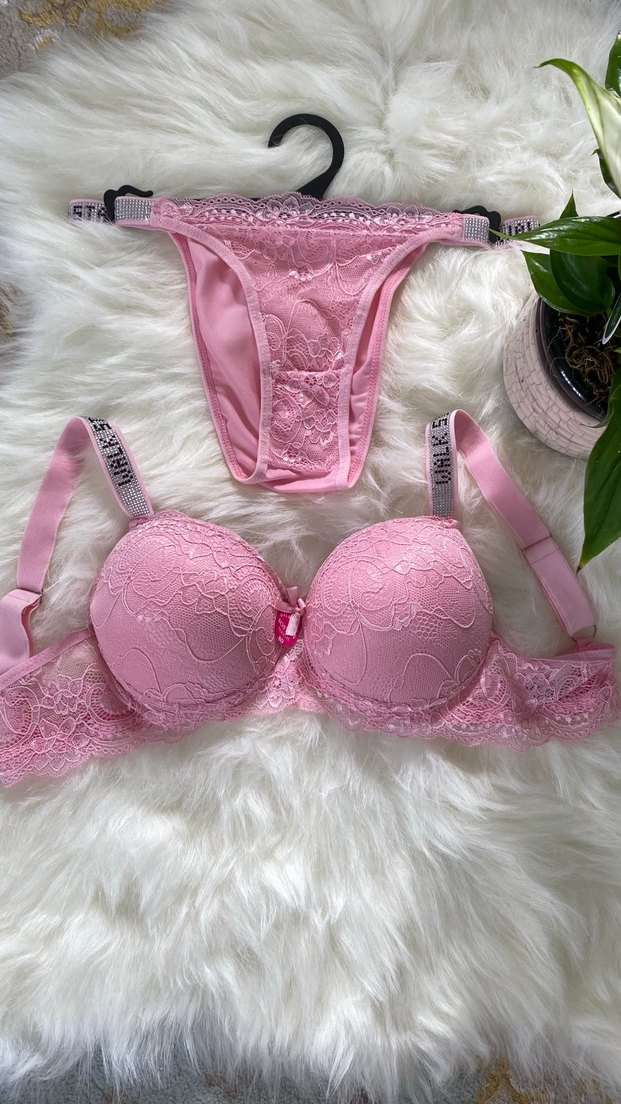 Dantel Detaylı Pembe Bohem Sütyen Takımı