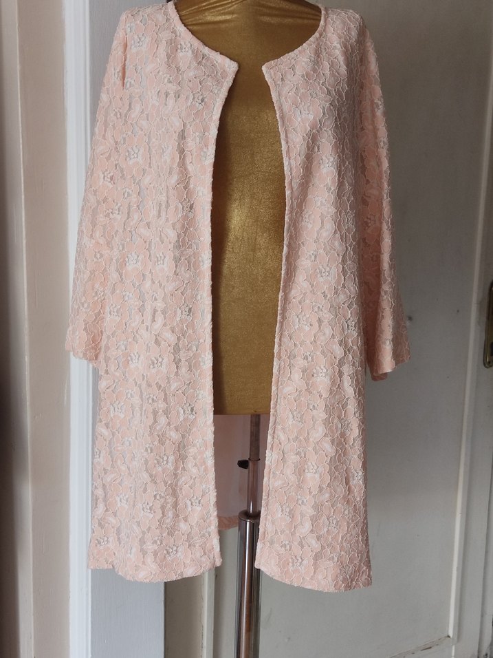 Dantel detaylı, uzun pastel pembe Notch yakalı, uzun kollu ve rahat kesimdir. çok çık kaliteli ürün