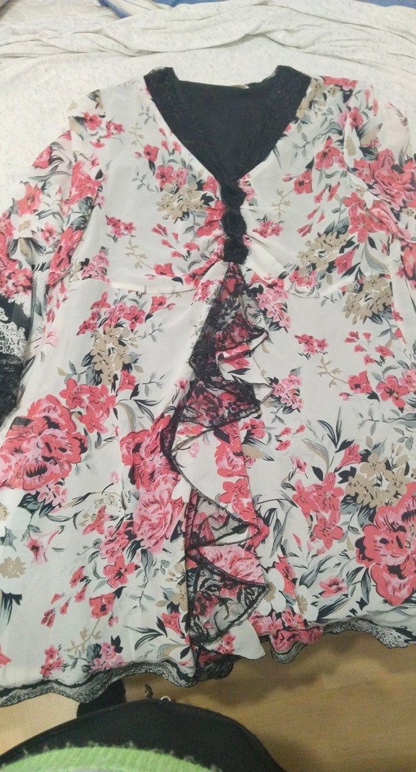 Dantel Detaylı Pembe Çiçekli Hamile Bluzu