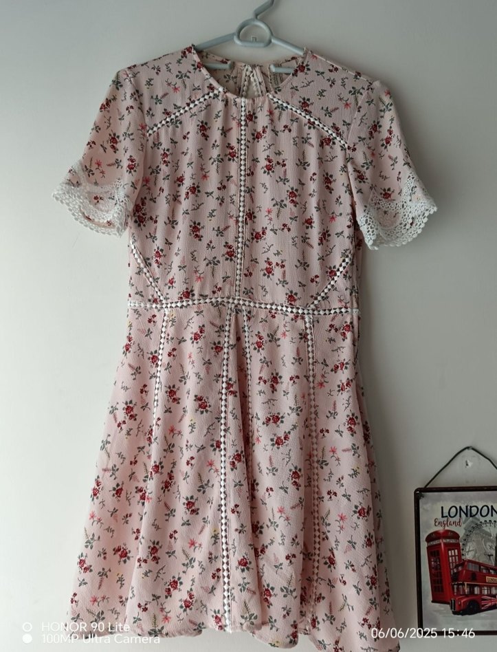 Pembe pastel tonlarda, çiçek desenli ve dantel detaylı, astarlı ve krep kumaşından mini elbise. Kısa kollu ve V yakalı, bohem tarzı yansıtıyor. Bir kez giyildi,hiç bir kusuru yok.Görseldeki ölçülere bakarak alım yapınız,iadesi kabul etmiyorum❗ &Mango&Zara&Bershka&Mudo&Adl&Lcw&De Facto&Koton&Pull&Bear&Oysho&Stradivarius&Twist&İpekyol&Polo garaje&Batık&Coton&