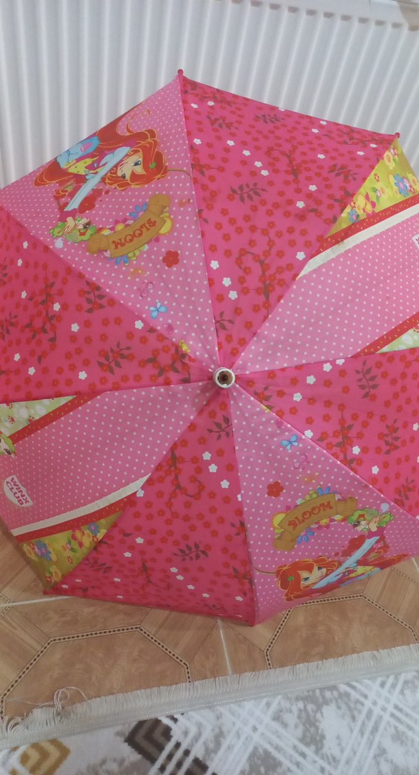 Renkli pembe kumaş ve dantel detaylı bu kadın şemsiye, bohem ve Paris esintili şık bir tasarıma sahiptir. herhangi bir kırılması yoktur sadece demirleri paslanmıştır kullanıma engel bir durumu yoktur