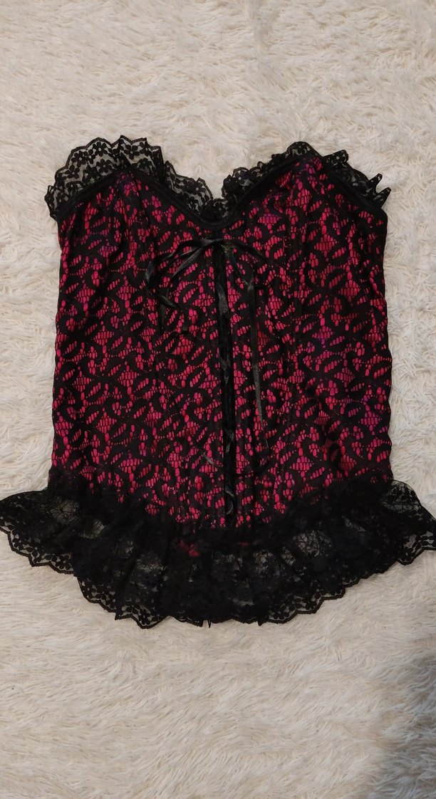 straplez bu büstiyer koyu pembe dantel desenli ve siyah dantel detaylıdır, cesur gotik tarzıyla romantik akşamlar için uygundur. . son görsel fikir vermesi açısından yüklenmiştir. yepyeni