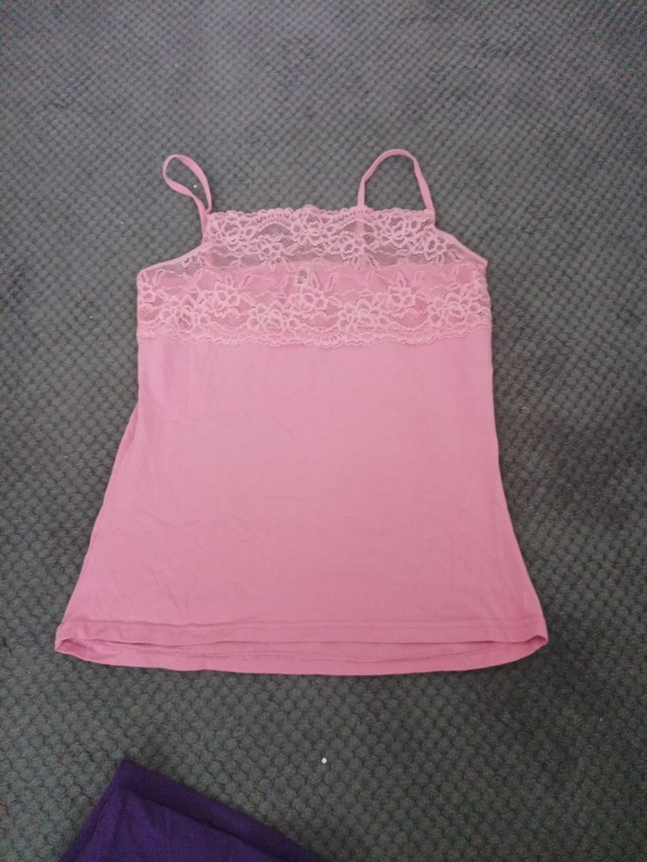 Pembe renkli, dantel detaylı ince askılı, straplez yakalı ve vücuda oturan kadın atlet, yumuşak sentetik kumaştan üretilmiştir. mor olan hediyedir askısı kopuk