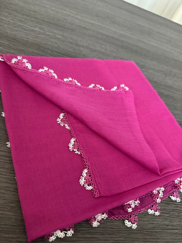Pembe renkte, ipeksi dokulu ve dantel detaylı kadın fular. Sade ve rahat tarzı, parlak kumaşıyla şıklık katıyor.