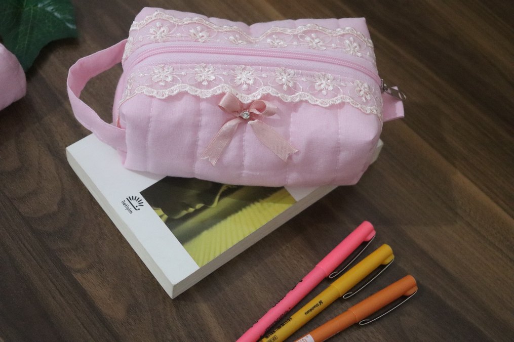 Dantel Detaylı Pembe Kadın Makyaj Çantası