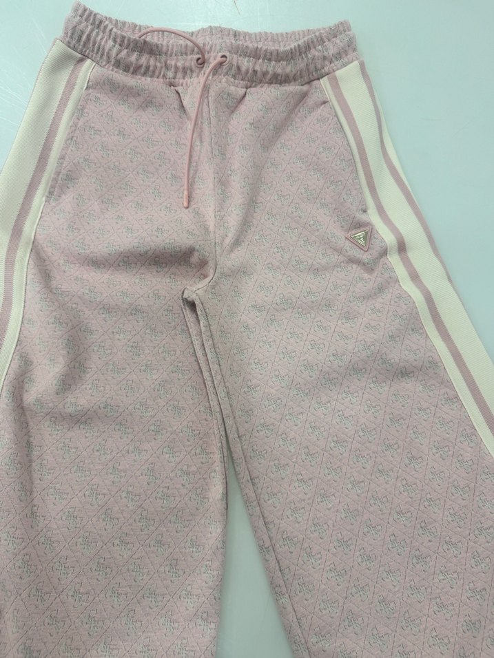 Pembe renkli, bol kesim kadın eşofman, desenli ve dantel detaylıdır. Yan şeritlerle günlük rahatlık sağlar.