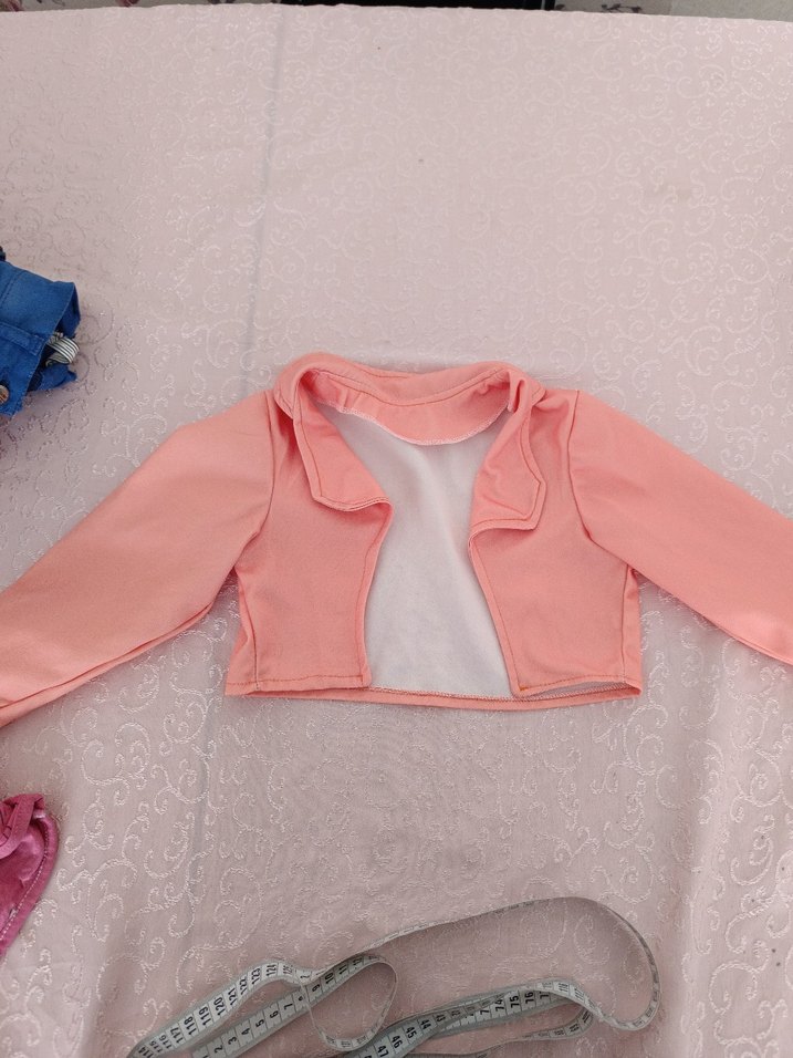 Uzun kollu, yuvarlak yakalı, dantel detaylı pembe kız bolero. Yumuşak ve sıcak kumaştan, vücuda oturan kesim.