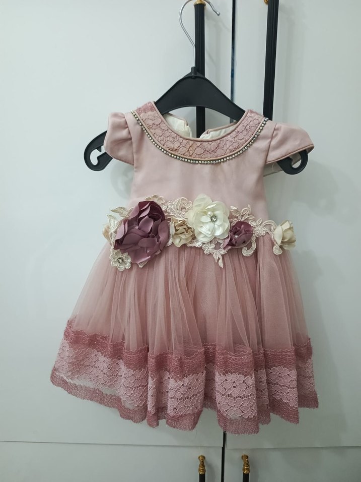 Dantel Detaylı Pembe Kız Çocuk Elbise