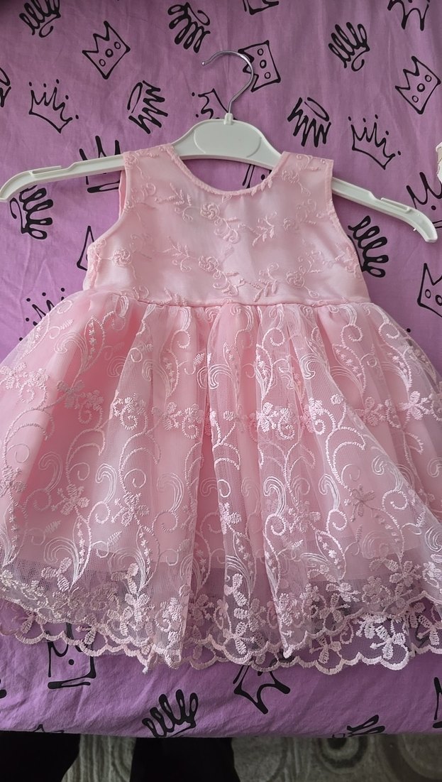 Kolsuz, işlemeli dantel detaylı, klasik bohem tarzda pastel pembe kız elbisesi, straplez ve vücuda oturan kesim.