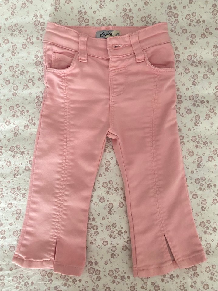 Dantel ve nakış detaylı, fitted kesim pastel pembe kız kot pantolon. Normcore tarzında, trendi ve günlük kullanıma uygun.