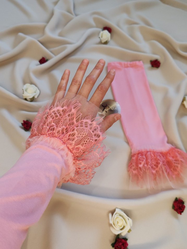 Dantel detaylı, pastel pembe seyyar kolluk modelimiz. Kolluk tasarımlarımız kıyafetlerimizin kollarına ekstra detay eklemek için ve özellikle namaz kılarken kullanımda pratiklik, bunun yanı sıra bohem tarzıyla zarif ve retro bir görünüm sunar. Standart bedenlerde dikim sağlıyoruz, ancak isteğe bağlı olarak kendi bilek ve kol ölçünüze göre dilediğiniz uzunluk ve genişlikte dikim sağlamaktayız.