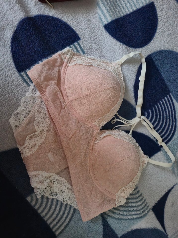 Yumuşak pembe renkte, dantel detaylı ve ayarlanabilir askılı, kısa boyda bohem tarzda rahat sütyen.