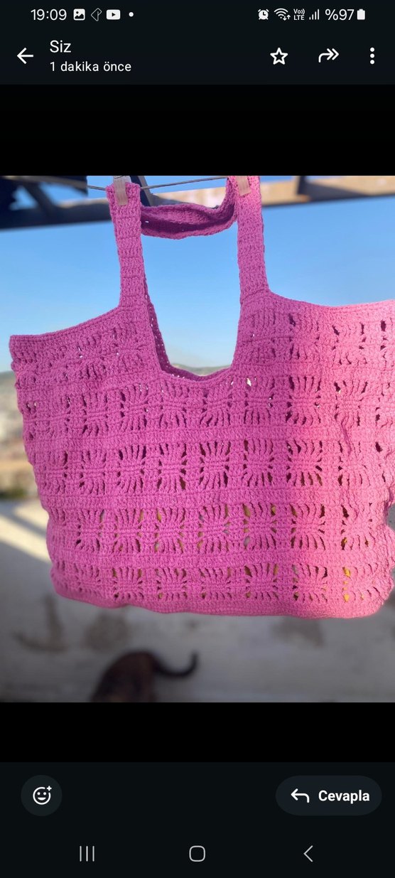 Pembe renkli, dantel detaylı örgu bohem tarzda kadın çantasıdır. Günlük kullanım için uygundur. en 61 boy 49 cm