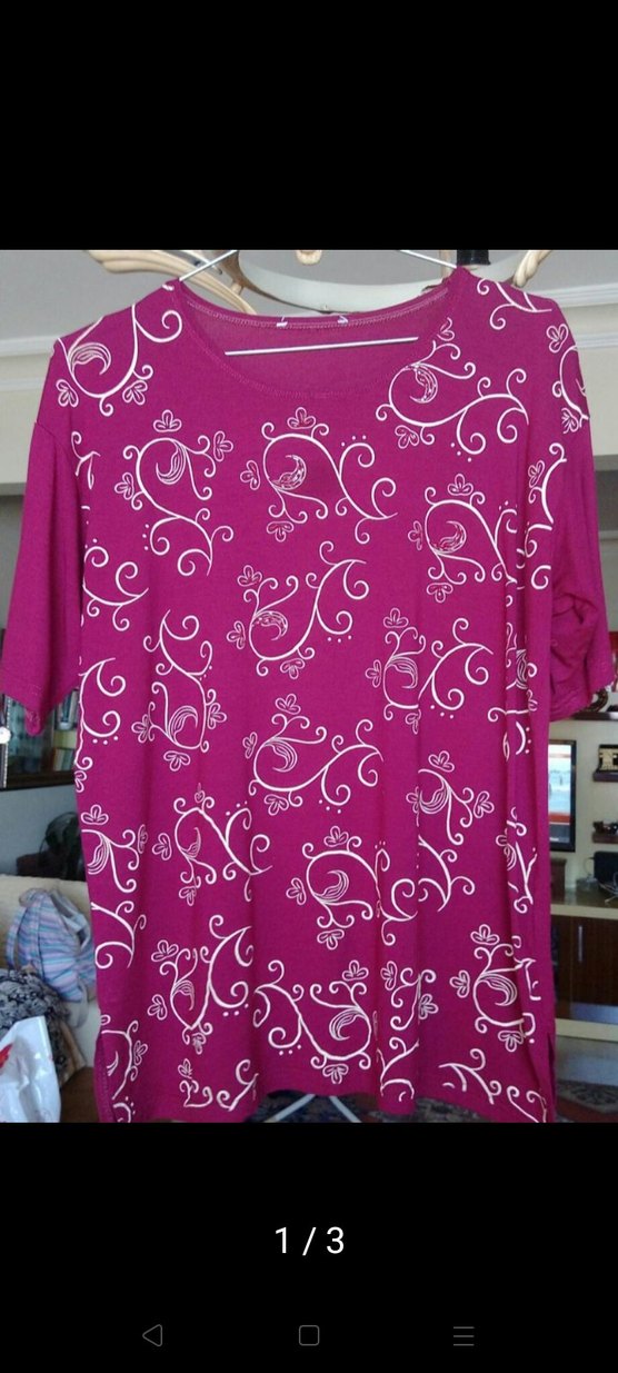 Pembe renkli, dantel detaylı tişört. Kısa kollu, yuvarlak yakalı, bol kesim ve renkli baskılıdır. Yumuşak ve ipeksi kumaştan üretilmiştir.