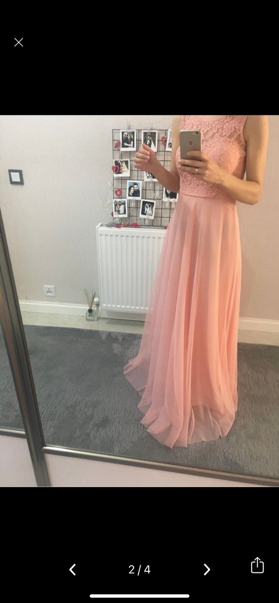 Dantel detaylı, straplez ve kolsuz pembe uzun abiye elbise. Fitted üst kısmı pastel tonlarda, modern klasik tarzda akıcı etekli, düğünler için uygun.