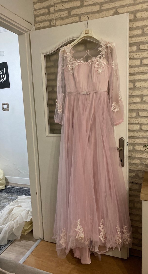 Belı 40 uzunluk 158 arka 170 pudra 1 kere gıyıldı çok şık bı abıye