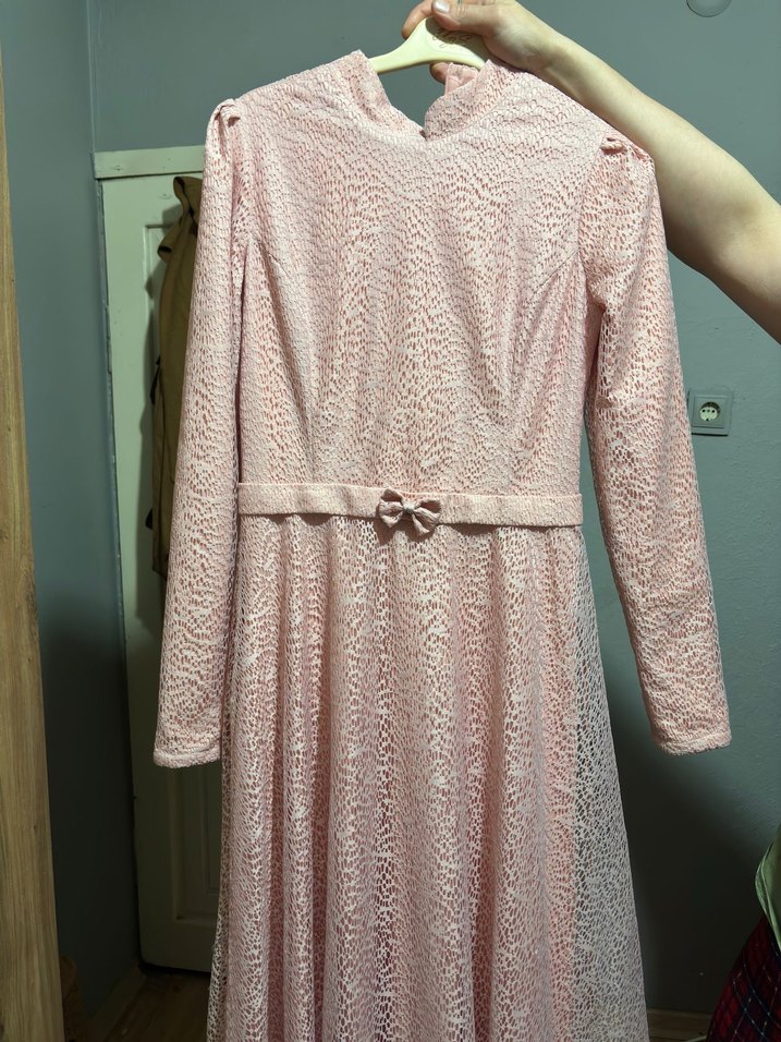 Dantel Detaylı Pembe Uzun Elbise