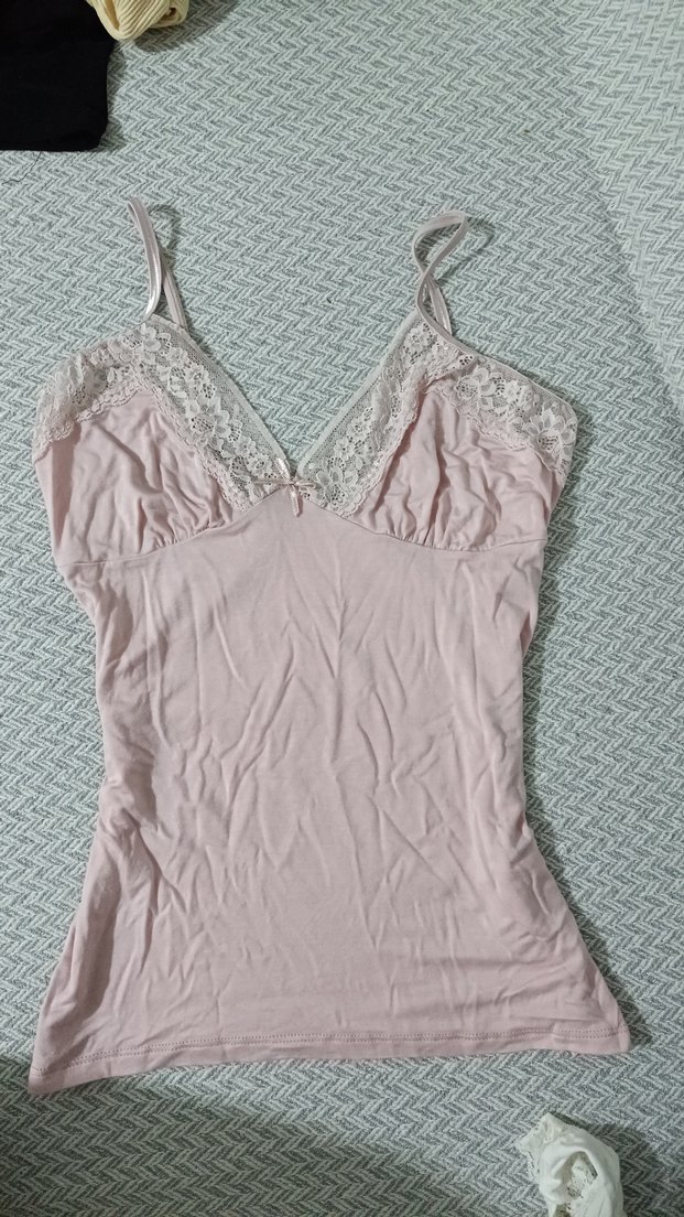 Bu pembe, v yaka ve dantelli atlet, yumuşak sentetik kumaştan yapılmıştır. Normal midi uzunlukta ve kolsuzdur, rahat sokak tarzı için uygundur.