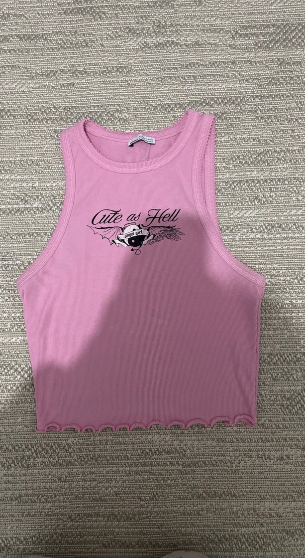 Dantel detaylı, yüksek yakalı, pembe renkli, pamuklu kumaştan yapılmış, baskılı ve fitted kesim kadın atlet. Rahat ve şık sokak stili için uygun.