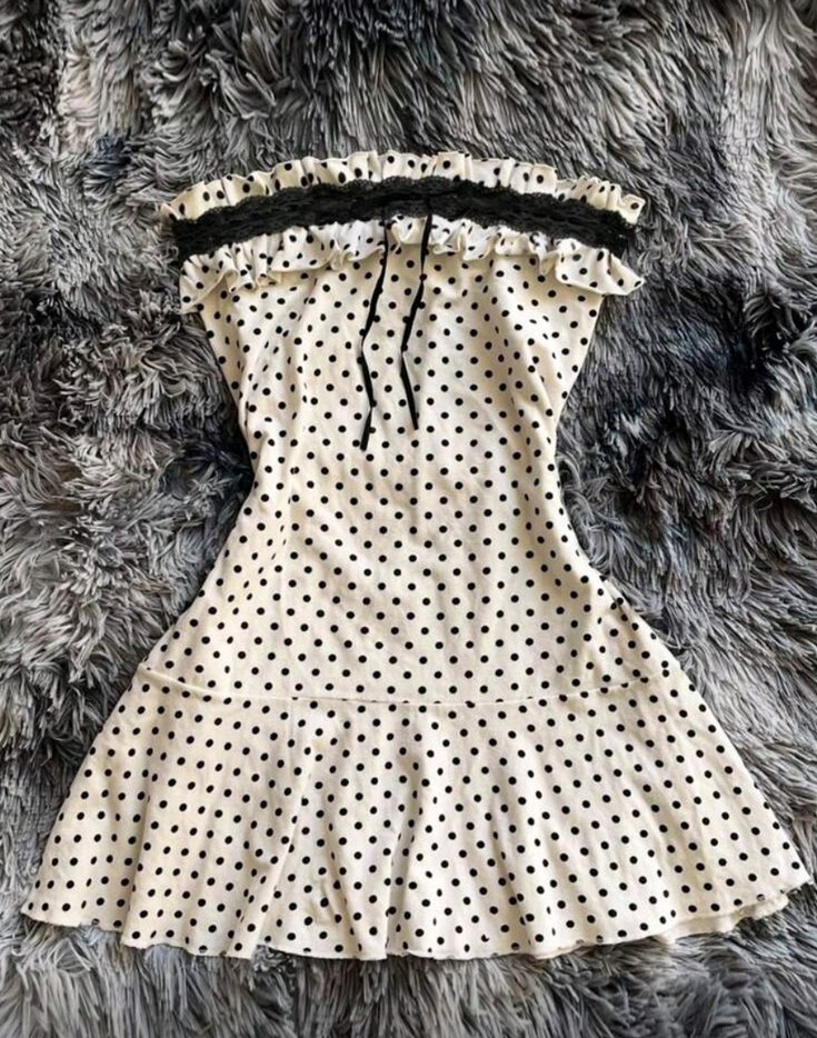 Dantel Detaylı Puantiye Straplez Elbise