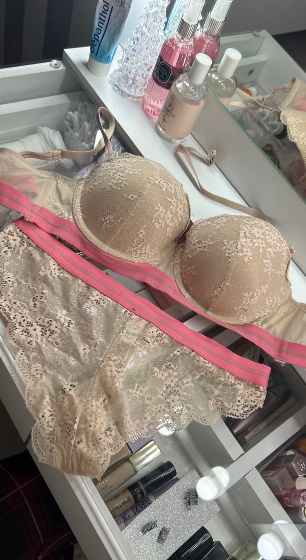 Dantel Detaylı Pudra Rengi Sütyen Takımı