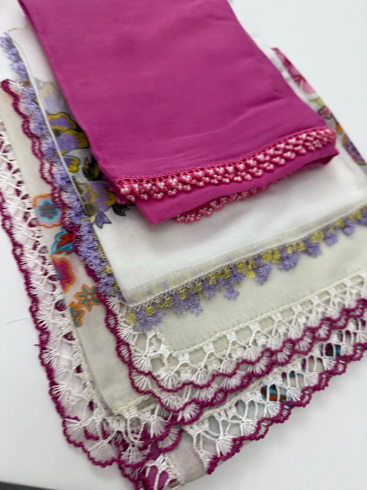 Kadınlar için renkli tekstil kumaşından yapılmış, dantel detaylı fulardır. Bohem ve retro tarzı sevenler için uygundur. 3 lü