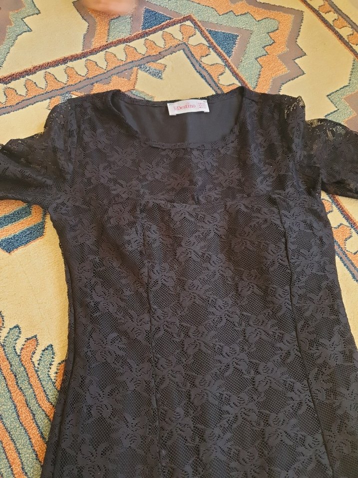 Kısa kollu, yuvarlak yakalı, sentetik kumaştan yapılmış, dantel detaylı ve gotik tarzda siyah Normal midi boyda ve günlük kullanıma uygundur.