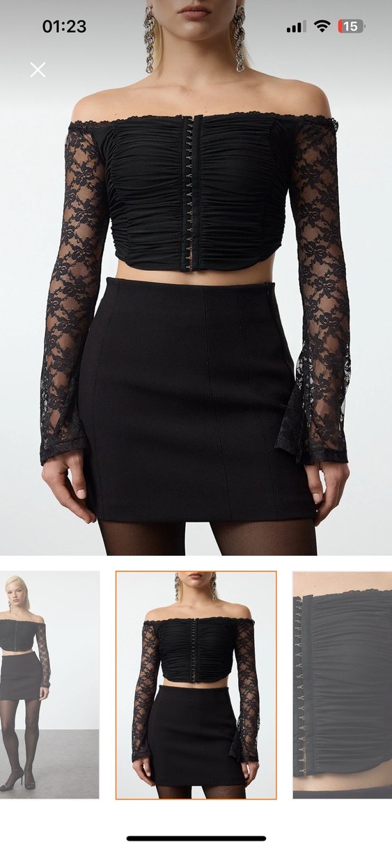 Dantel detaylı, siyah , vücuda oturan bluz Pürüzsüz sentetik kumaştan, cesur romantik akşamlar için uygun.
