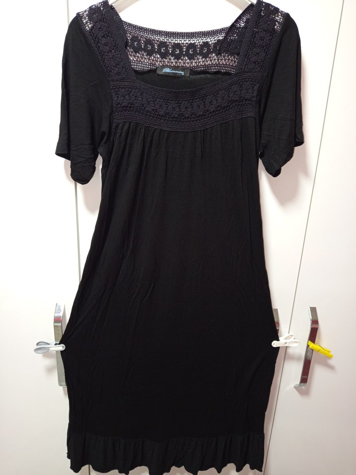 Dantel detaylı, nakışlı siyah hamile elbisesi.penye tarz kumaşı,,Kısa kollu, bol kesim ve kayık yaka ile günlük kullanıma uygun.38/40 M/L BDN BLUMARİNE MARKA mağaza ürünü,, günlük gezmelik, iş hayatında kullanım için uygundur, tarzını sen belirle, sıfır ayarında, sadece 2 kez giyilmiş yıkayıp kaldırıldı,