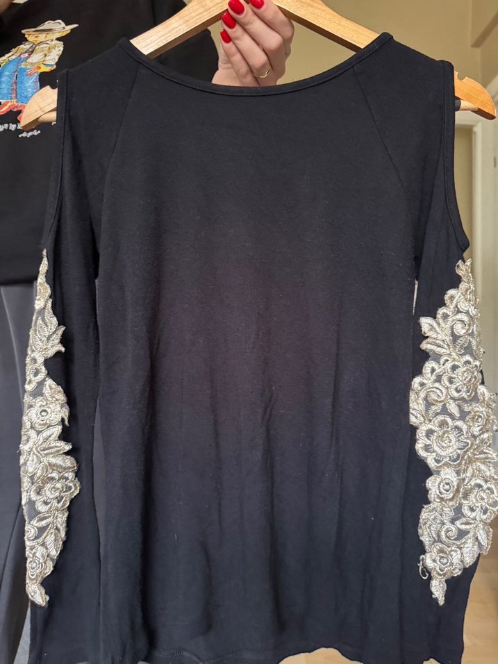 Dantel Detaylı Siyah Bohem Kadın Bluz