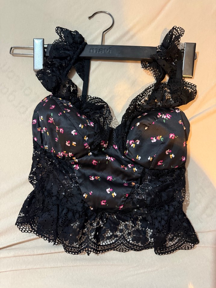 Dantel Detaylı Siyah çiçekli Bustiyer