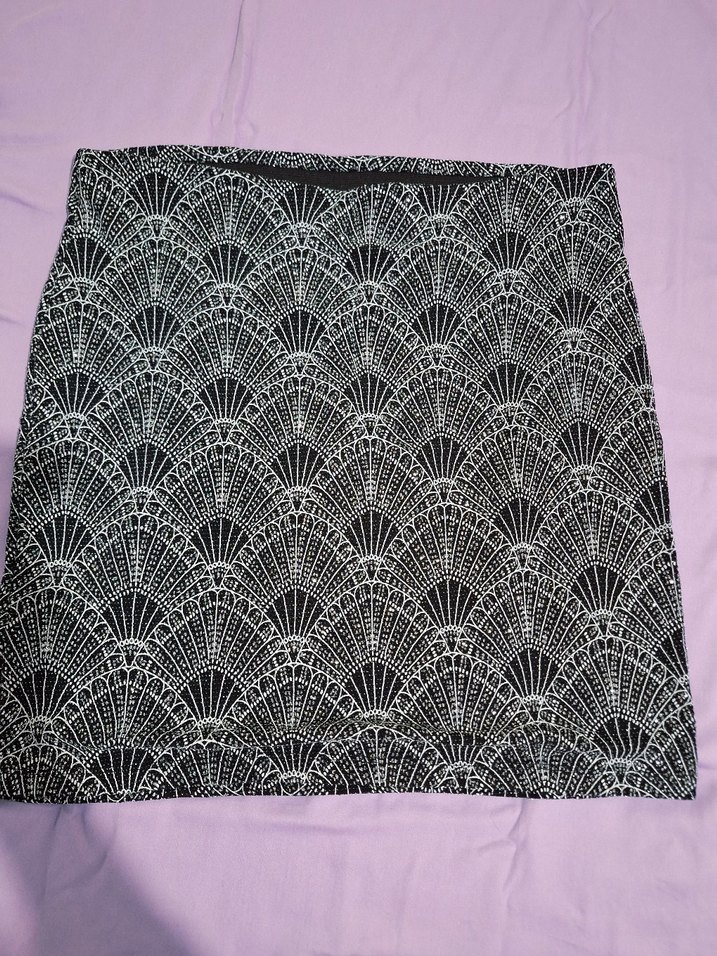 Dantel detaylı, siyah ve gri desenli, bohem ve Paris tarzını yansıtan, günlük kullanıma uygun, vücuda oturan midi etek.