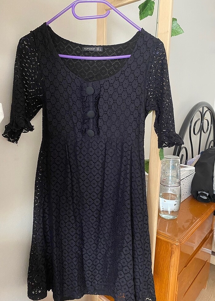 Dantel detaylı siyah elbise,l beden, 84 cm
