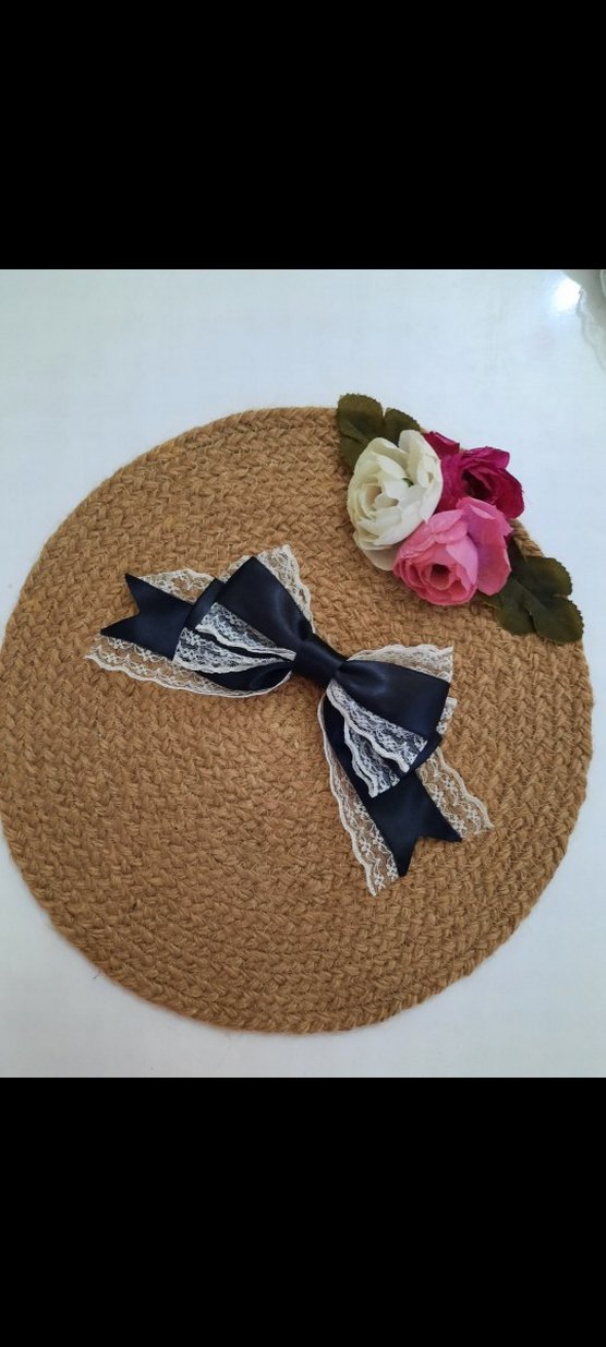 Dantel Detaylı Siyah Fiyonk Saç Aksesuarı