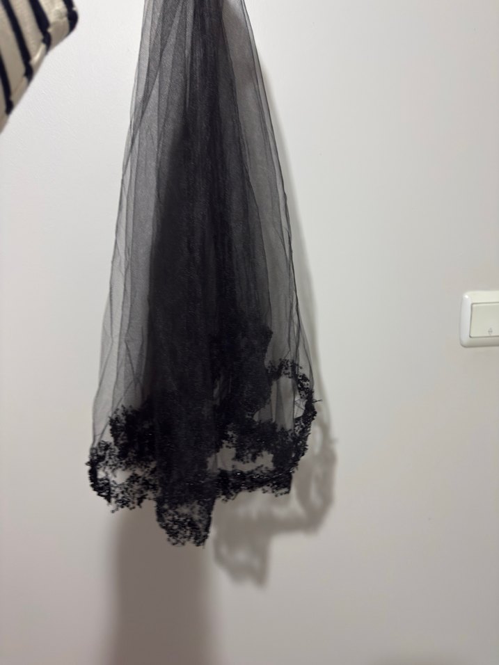 Dantel Detaylı Siyah gelin duvağı
