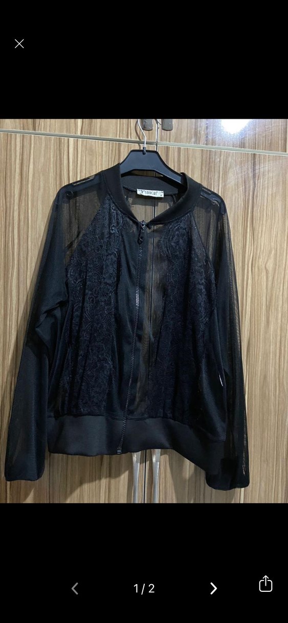 Uzun kollu, dantel detaylı siyah goth tarzı kadın ceketi. Yuvarlak yakalı, rahat kesim ve sentetik kumaştan üretilmiştir.