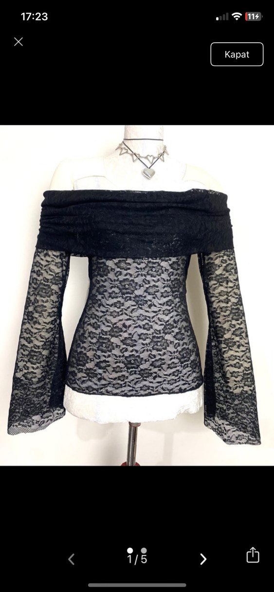 BEDENLERİ VARDIR. Bu siyah bluz, straplez yaka ve uzun dantel kollara sahip, gotik ve bohem tarzlar için uygun. Normal-midi uzunlukta ve yumuşak örme kumaştan yapılmıştır.