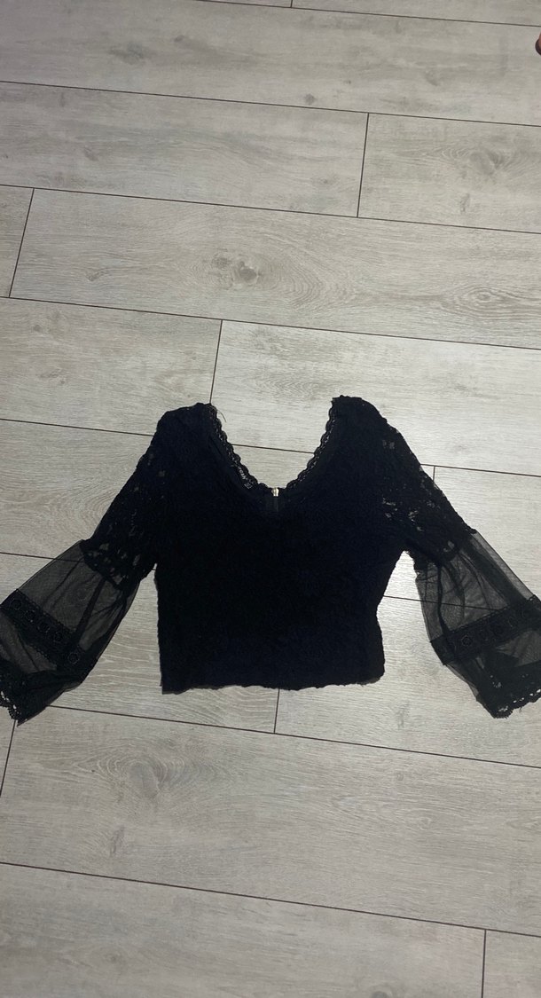 Siyah, V yaka ve uzun dantel kollu, nakış detaylı. Çok güzel bir bluz.