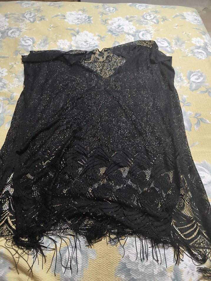Dantel detaylı, sentetik kumaştan yapılmış siyah gotik kadın, bohem ve retro tarzda.