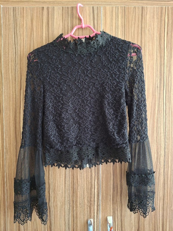 Dantel Detaylı Siyah Gotik Kadın Bluz