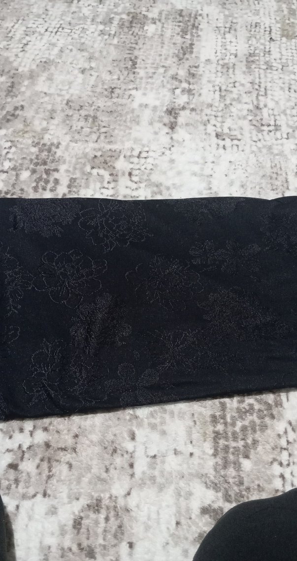 Siyah kadın kumaş, yumuşak sentetik kumaş üzerinde koyu çiçekli dantel deseniyle gotik ve rahat bir tarz sunar. Modaya uygun ve avangart görünüm sağlar.