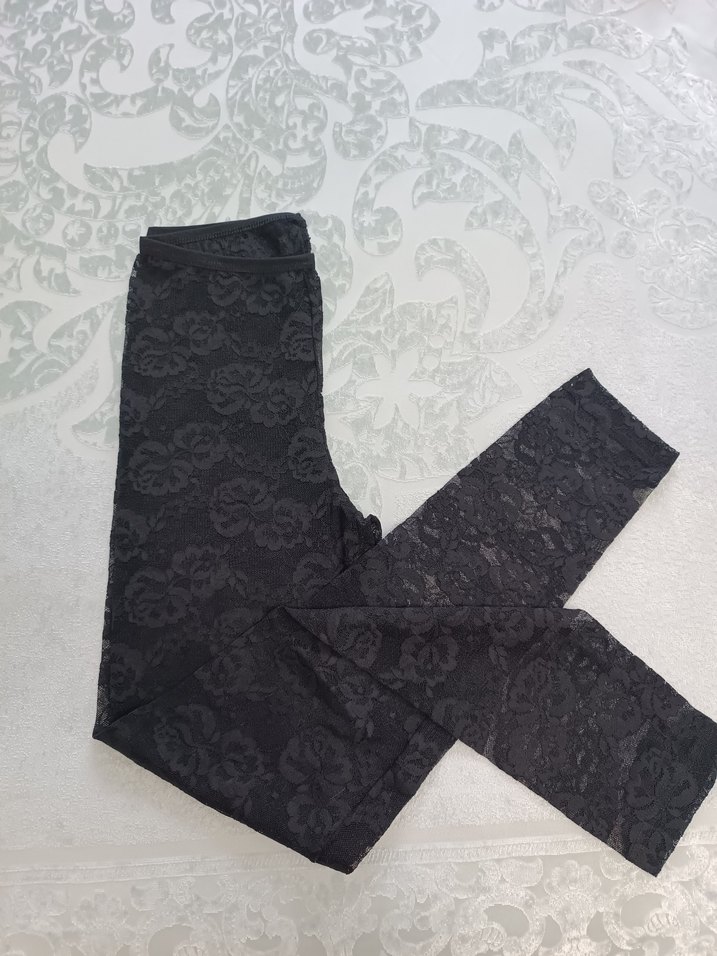 Dantel detaylı, gotik tarzda, siyah ve vücuda oturan kadın tayt. Yumuşak sentetik kumaştan, uzun boy ve desensizdir, günlük kullanım için uygundur. kota marka