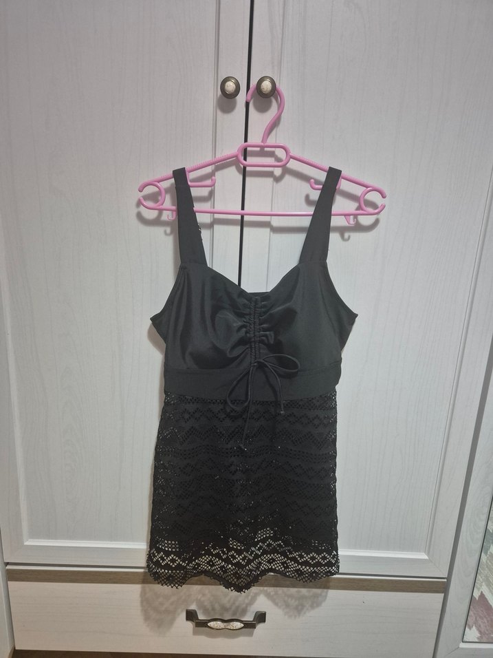 Siyah, dantelli ve askılı 2 parça mayo. sıfır ürün 42-44 beden uyumlu.