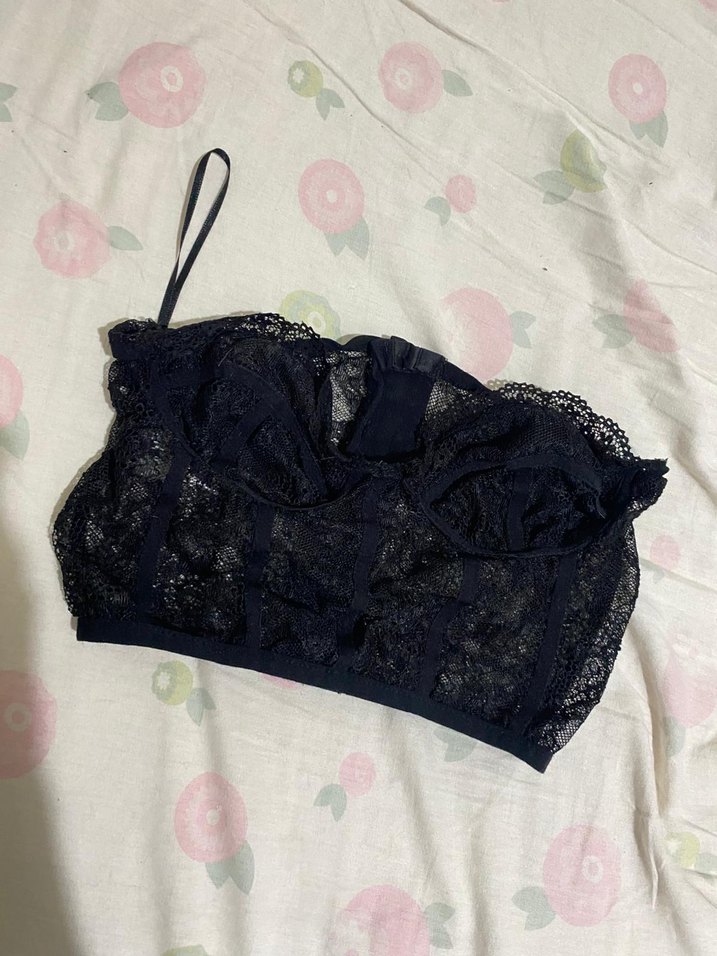 Dantel kumaştan, straplez ve askılı, siyah renkli, gotik tarzda, vücuda oturan bir büstiyerdir. Romantik akşamlar için uygundur.