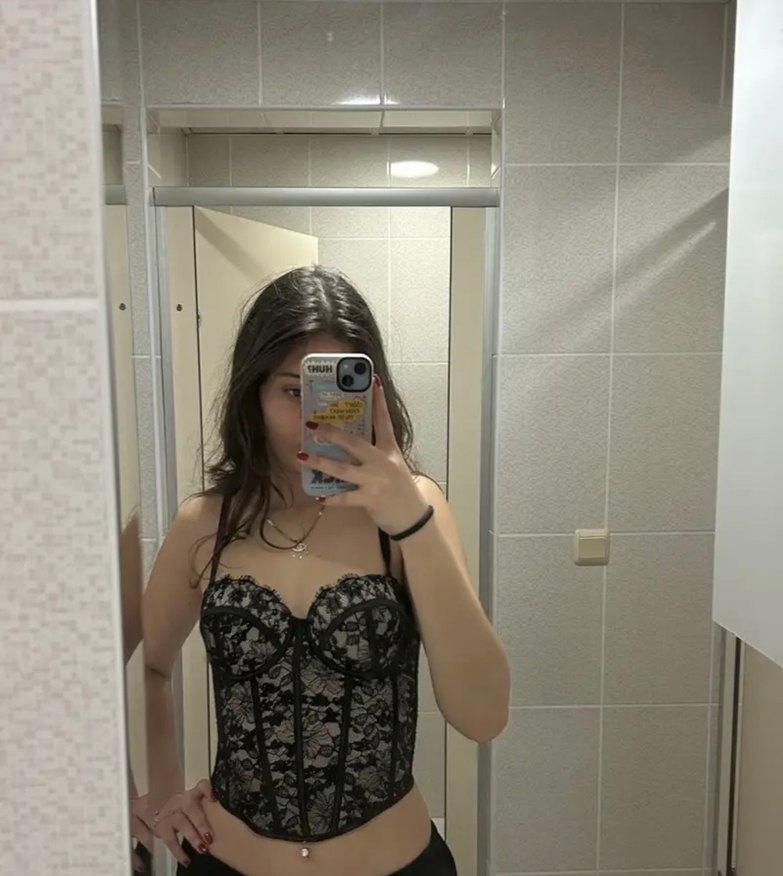 Dantel detaylı, desenli siyah straplez büstiyer. İnce askılı, vücuda oturan midi boy, cesur gotik tarz için uygun. Elimde yalnızca bir adet var, baska getirmeyeceğim iyi alisverisler.