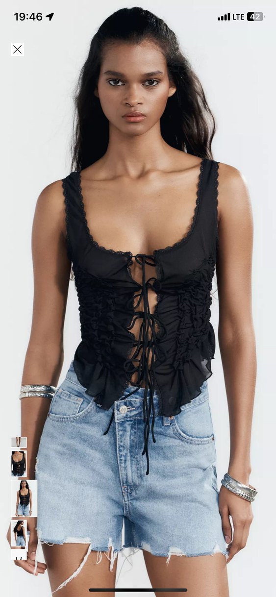 Askılı, siyah gotik zara büstiyer. Dantel ve nakış detaylı.