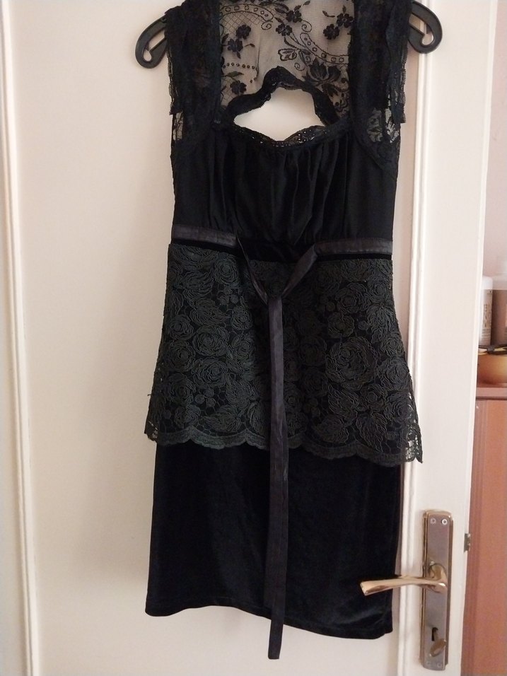Dantel Detaylı Siyah kadife elbise